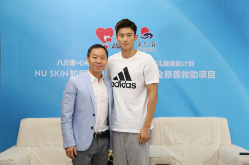 9月12日,爽朗的秋日暖阳下,NU SKIN如新中华儿童心脏病基金慈善救助项目落地河南仪式在河南省人民医院举行。一个熟悉的身影出现在了仪式现场,泳坛名将,宁泽涛。