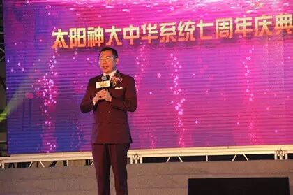 2015年5月29日,“感恩有你 温暖同行”太阳神大中华系统七周年庆典暨新人成功之路风采展活动于武汉客厅隆重举行,太阳神集团营销总部总经理张鸣先,副总经理迟广军,总经理助理王年成,太阳神大中华系统创始人何涛,系统核心黄汉明、张海艳等高层,多家直销行业媒体嘉宾及7000名太阳神大中华系统团队成员共同见证了此次盛会。