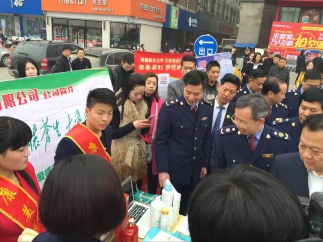 工作人员向工商局领导详细介绍康美产品