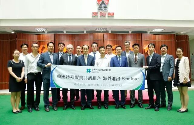 KOSSA韩国特殊贩卖共济组合主席高寅培参观和听取了太阳神的发展状况后,对太阳神的雄厚实力大加赞赏,并表示十分看好太阳神未来的发展。他说,太阳神在行业内一直有着甚高的名气和美誉,相信未来太阳神的发展也必定会更加辉煌,未来,也十分欢迎太阳神能够去韩国发展。