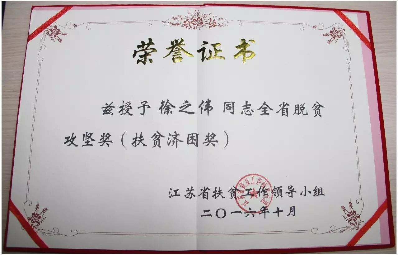徐董荣获江苏省扶贫济困奖