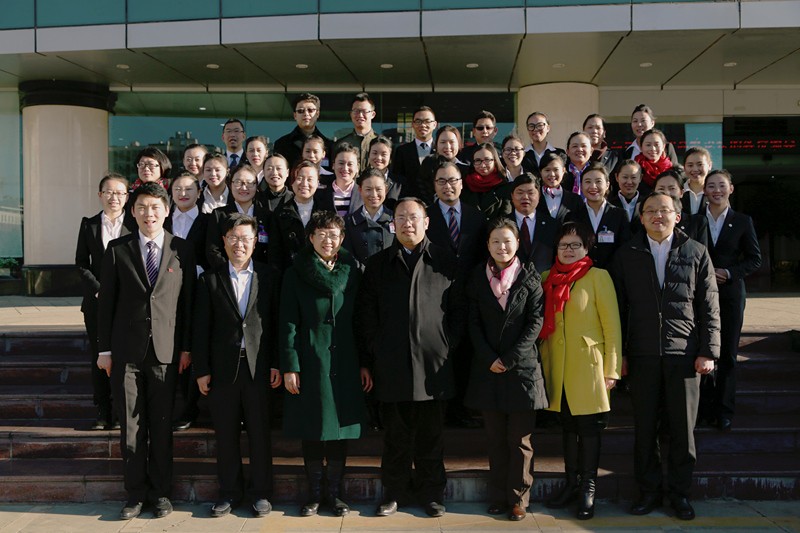 云南农业大学龙润普洱茶学院院长吕才有(前排右四),学院党委书记陶玫(前排左三),理科技集团董事何文博士(前排左二)、集团党委副书记、副总裁李伟剑(前排左一)等领导与参训学员合影