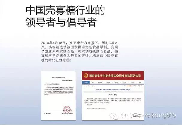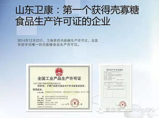 2014年,在卫康的全力助推下,壳寡糖成功被国家批准为新食品原料,卫康成为中国壳寡糖新食品原料标准的起草者,与此同时卫康也成为全国首家获得壳寡糖生产许可证的企业,这些都表明了中国壳寡糖的时代已经来临。