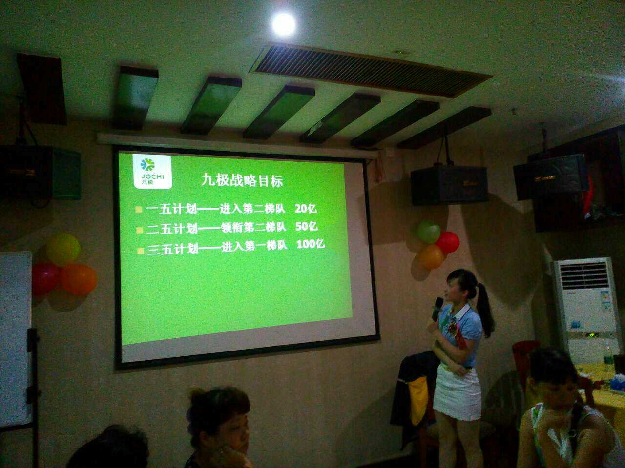 本次会议邀请到了九极公司广东区域经理肖晓辉,肖经理为大家深入地介绍九极公司,为大家构筑出一幅美好的事业蓝图,同时还带来了公司的利好消息。会议惊喜不断,伙伴们积极互动,也获得了许多精美的小礼物。