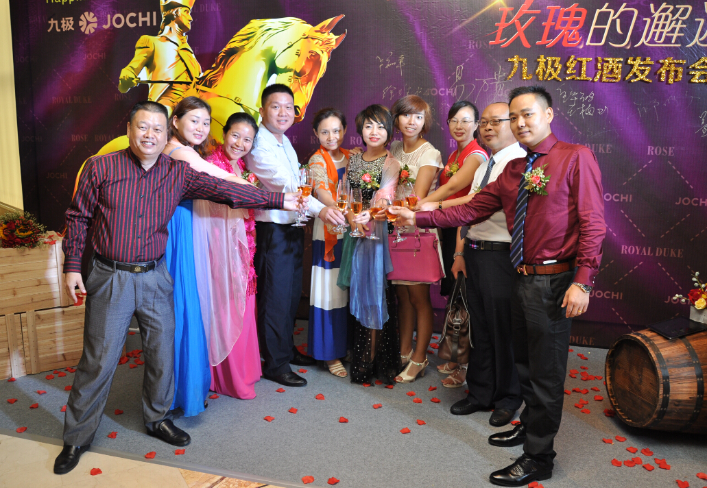 广东九极生物科技有限公司总裁宁水生先生,全国营销总监顾伟奇先生,总裁助理王飞先生,数据信息中心总监杨哲女士,九极公司首席专家、中国自由基研究第一人陈瑗、周玫教授伉俪,九极公司王室公爵与玫瑰出品酒庄庄主Tendy先生,英国WSET认证高级品酒师Michael先生等多位领导嘉宾,以及全国各地九极经销商精英代表近两百人出席活动,共襄盛会,见证这令人激动的时刻。