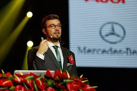来自德国德善健肤有限公司研发中心发言人Ivo Alexander Strassenbrug发布思莉姿产品并现场进行演示