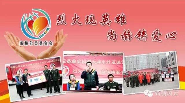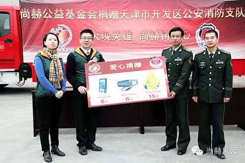 2015年12月14日,尚赫公益基金会在这个冬季送去了暖心情怀,为天津市开发区公安消防支队带去爱心捐赠。一场发生于天津市的"8.12"爆炸事故,让人们铭记了一群英勇捐躯的消防战士,也让尚赫公益基金会留下了一笔溢满希望与阳光的记载,数月以来的持续关怀,展现着尚赫公益“心系慈善•爱心永续”的无疆大爱,“烈火现英雄•尚赫铸爱心”——熊熊烈火燃烧出了一名名热血英雄,也铸就了尚赫公益的炽热情怀。